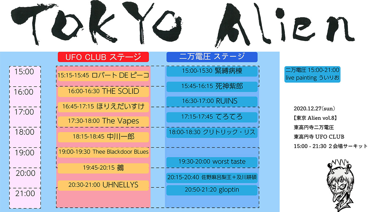 ライブハウス支援連続企画「東京Alien」によるチャリティーコンピレーションアルバム『TOKYO ALIEN』が12/27にリリースされる。