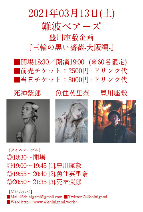 【NEWS】イベント情報:死神紫郎 × 豊川座敷による主催イベント『三輪の黒い薔薇』東京と大阪で開催 主催者2名に魚住英里奈を加えたスリーマン
