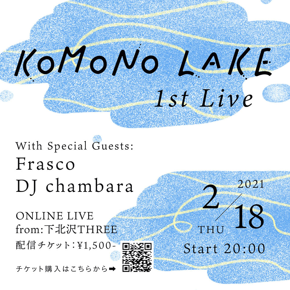 2021年1月に活動を始動したKOMONO LAKEは「自然派シティポップユニット」がコンセプト。現代のジャパニーズ・ソウル・サウンドを継承しつつ、シティ・ポップや昭和歌謡にも影響された独特の音楽性が特徴。Kanbinの飾らない歌声と、それを支えるSKYTOPIAのサウンドが幻想的な情景を作り出す。