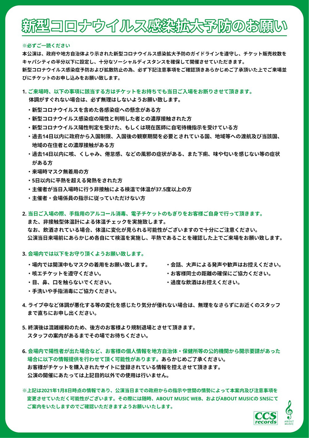 Adv. ¥3,800 / Door ¥4,300(DAY、NIGHT共)