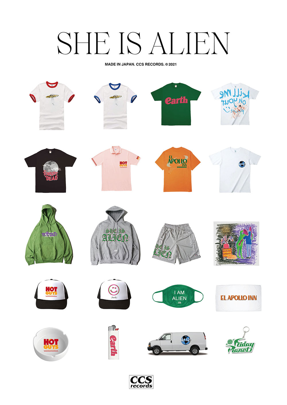 今回は「SHE IS ALIEN」のオリジナルストーリーに基づいたものなどアルバムに合わせたプロダクトを販売。