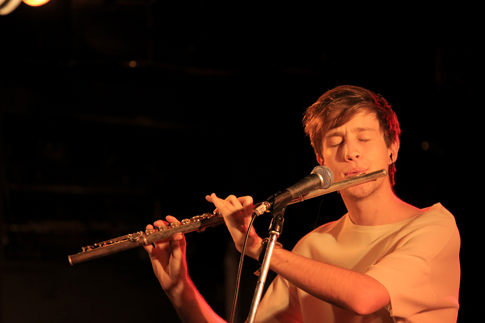 1曲目はクールなトラックにJeremyの奏でるフルートの音色が印象的な「December / No Diggity」でご挨拶。日本が大好きと語る2人は、覚えたての日本語を使って煽り、オーディエンスを盛り上げる。